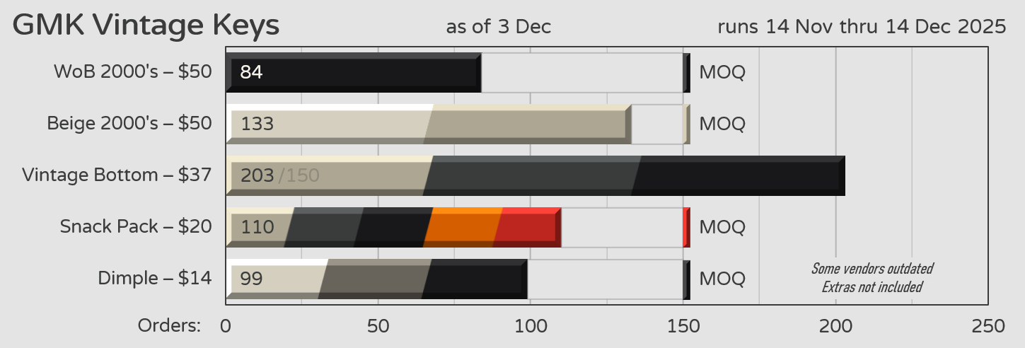 A reminder to sign the Google form (link below) to reserve a pad printed key set. The first batch of about 250-300 will be white text on black keys, US key sets only, no front printing. Additional sets will proceed based on demand.