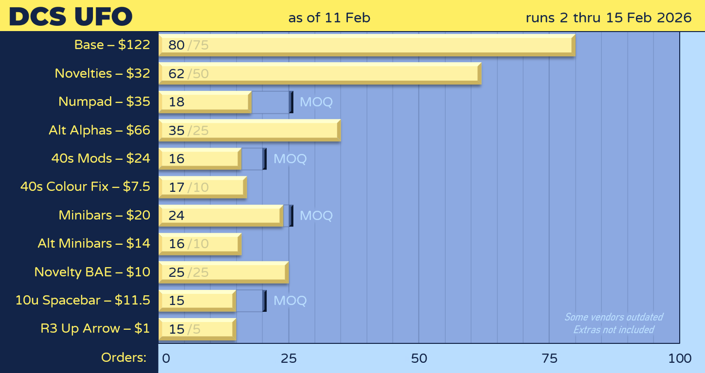 « Last post by donaldmanny on Wed, 11 February 2026, 23:42:22 »Been following this set since the first IC was posted back in '21. Echoing other's comments, I'd be in if it was GMK, regrettable to see the manu change to Milkyway.
