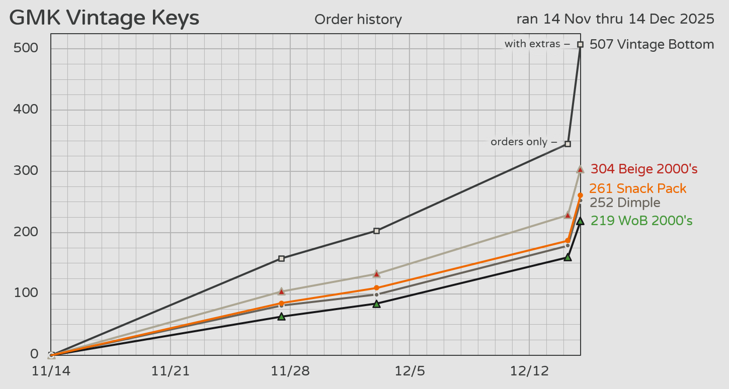 - For those who have been following I have been hinting at a **redacted** option for a bit, mostly for fun. *But* for the first 500 orders there will be a free strip of the heaviest tactile domes ever sold. You read that right, heaviest ever sold, with a whooping ~500g peak. These will only be available as a single strip as a free gift for helping make this dream a reality. Once they are sold out, they are gone. You can attempt to collect strips from others to build a full board but know the 2U strips are super rares (11.5x more 1U than 2U). Though you could theoretically make 15 orders in hopes to build an HHKB.