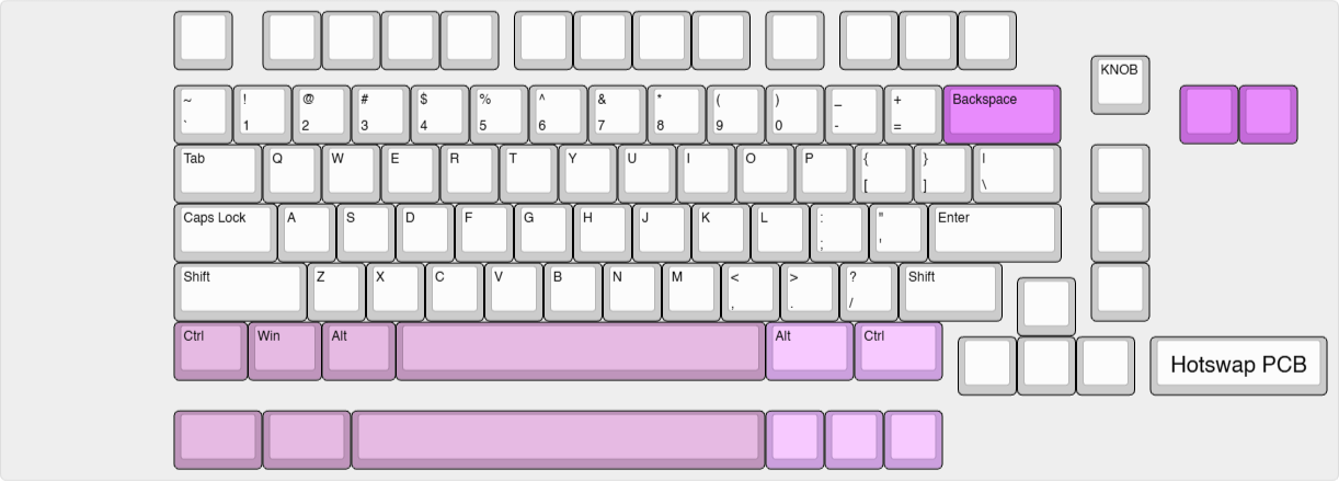 Interest Check Form HERELayoutsAnother feature of the original Sat75 was a fixed plate. The mostly fixed plate comes back again this time around for my preferred layout - a 6.25U ANSI bottom row. This time around, stepped caps lock is also supported by the hotswap PCB.