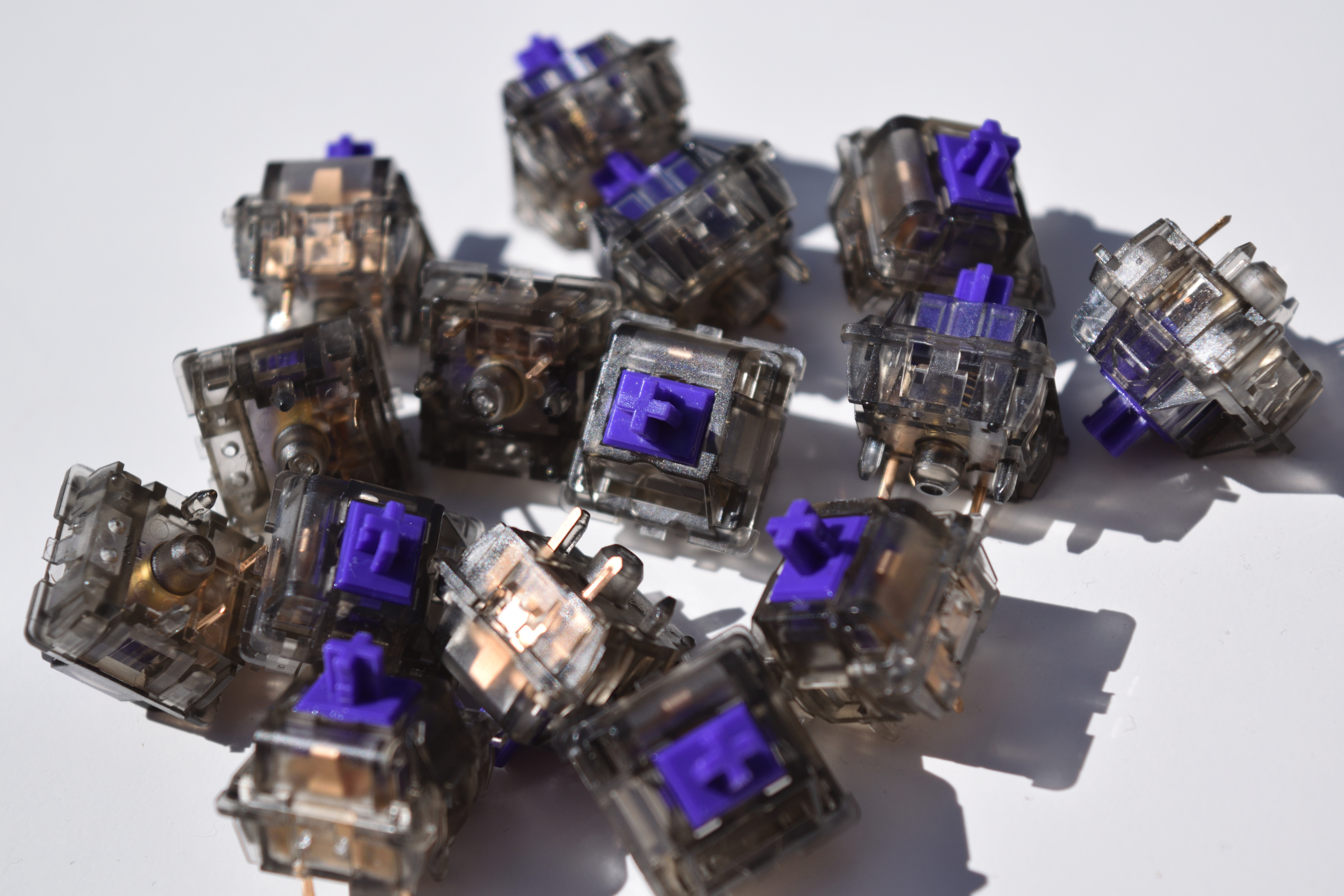 Twilights are not a JWK recolor. It was born out of a JWK frankenswitch combo that Pylon and brainandforce discovered independently while experimenting: combining the MX Clear-like stem from a Durock Medium Tactile switch with the tactile leaf of the Durock T1 housing. The result is a sharp, punchy, tactile switch, with just a bit of pretravel. Imagine a smoother, much more tactile Ergo Clear. A tactile switch as intense as an NK_ Blueberry that can hold its own at lighter spring weights.