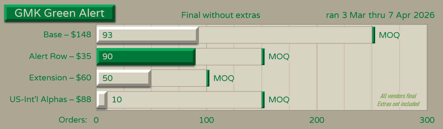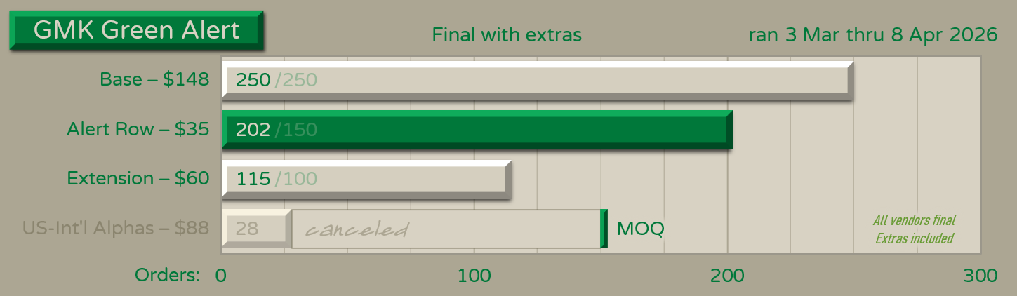 GMK CYL Green AlertHey, green man back at it again. There’s no long explanation needed. This keyset is inspired by IMSTO Irish, and I think Green Alert would be cool. I also love green, trees, grass and frogs.