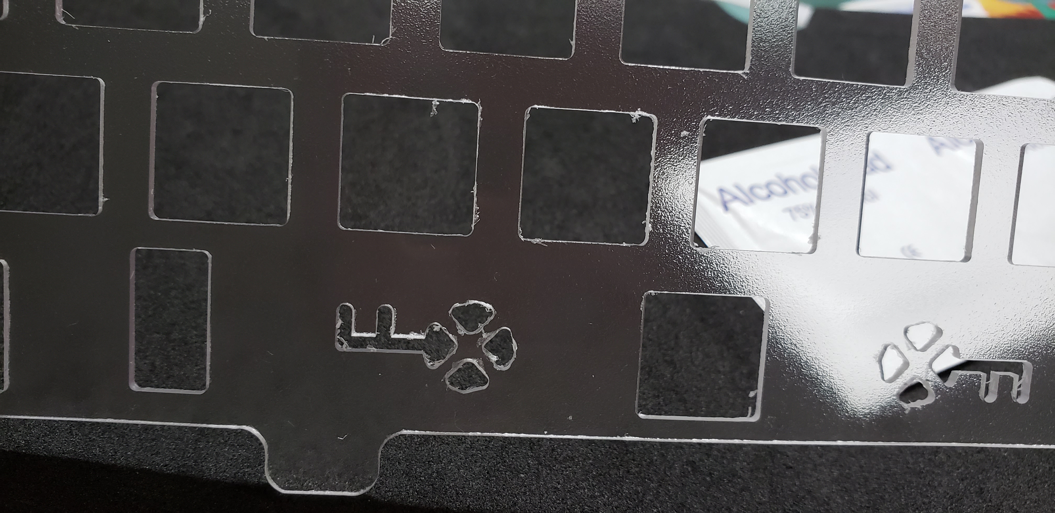 It doesn't look like it's actually cut wrong, just some leftovers. Though I'll be using the alu plate most likely.