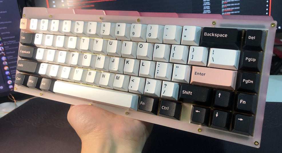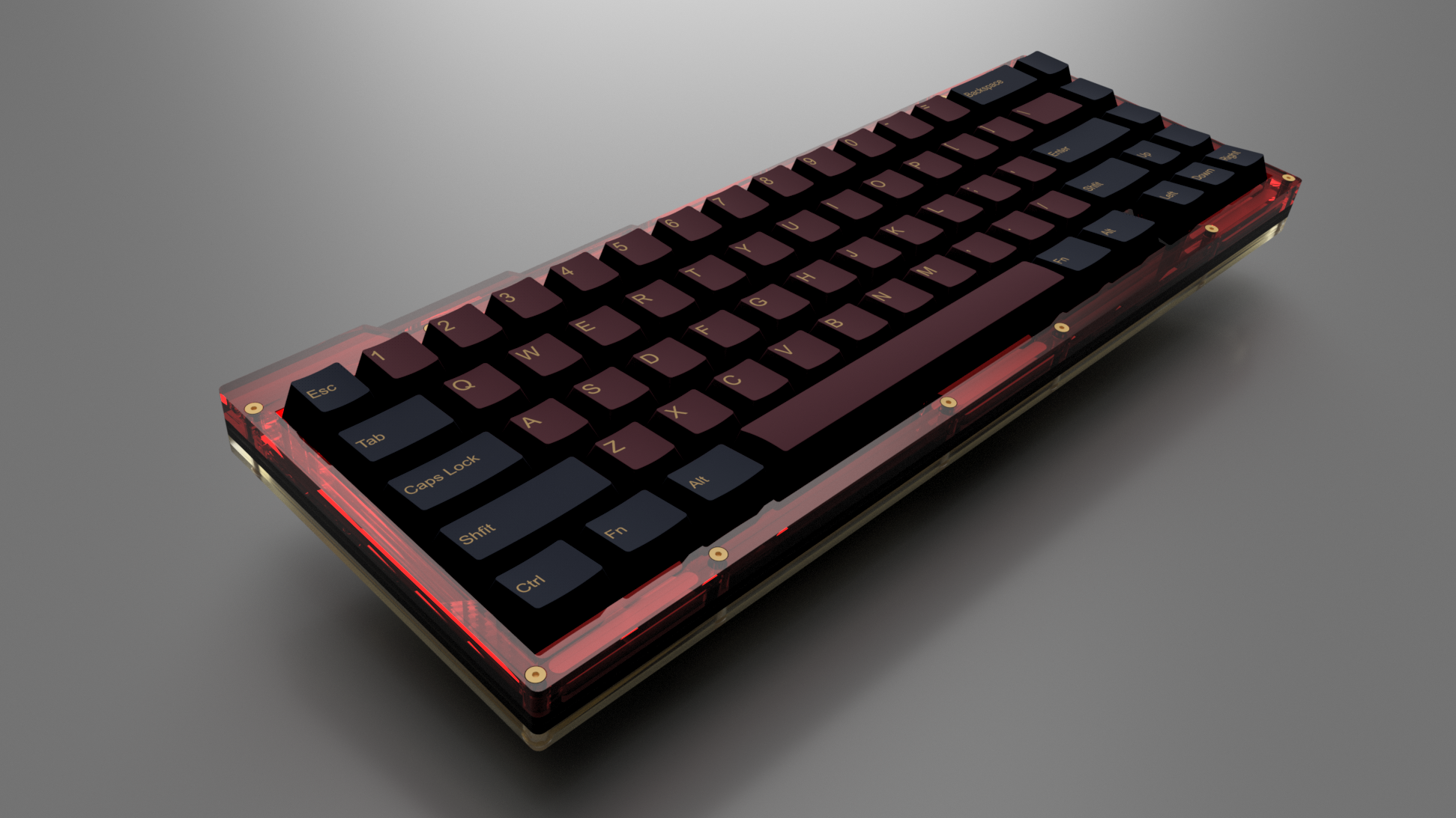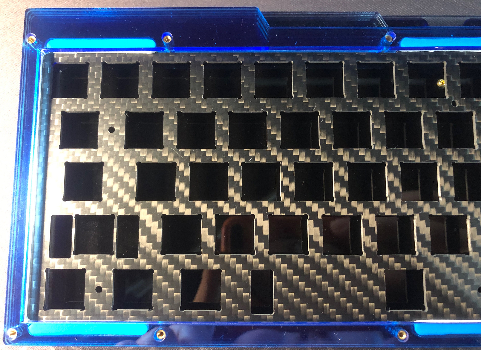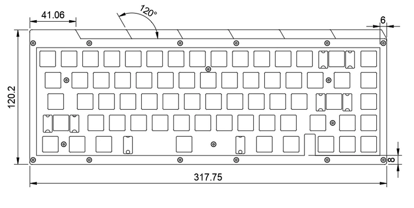 - Acrylic sandwich structure, with fully isolated, gasket mounted switch plate. Switch plate is supported by 6 silicone and 6 EVA gaskets and completely hidden from sides of the case.
