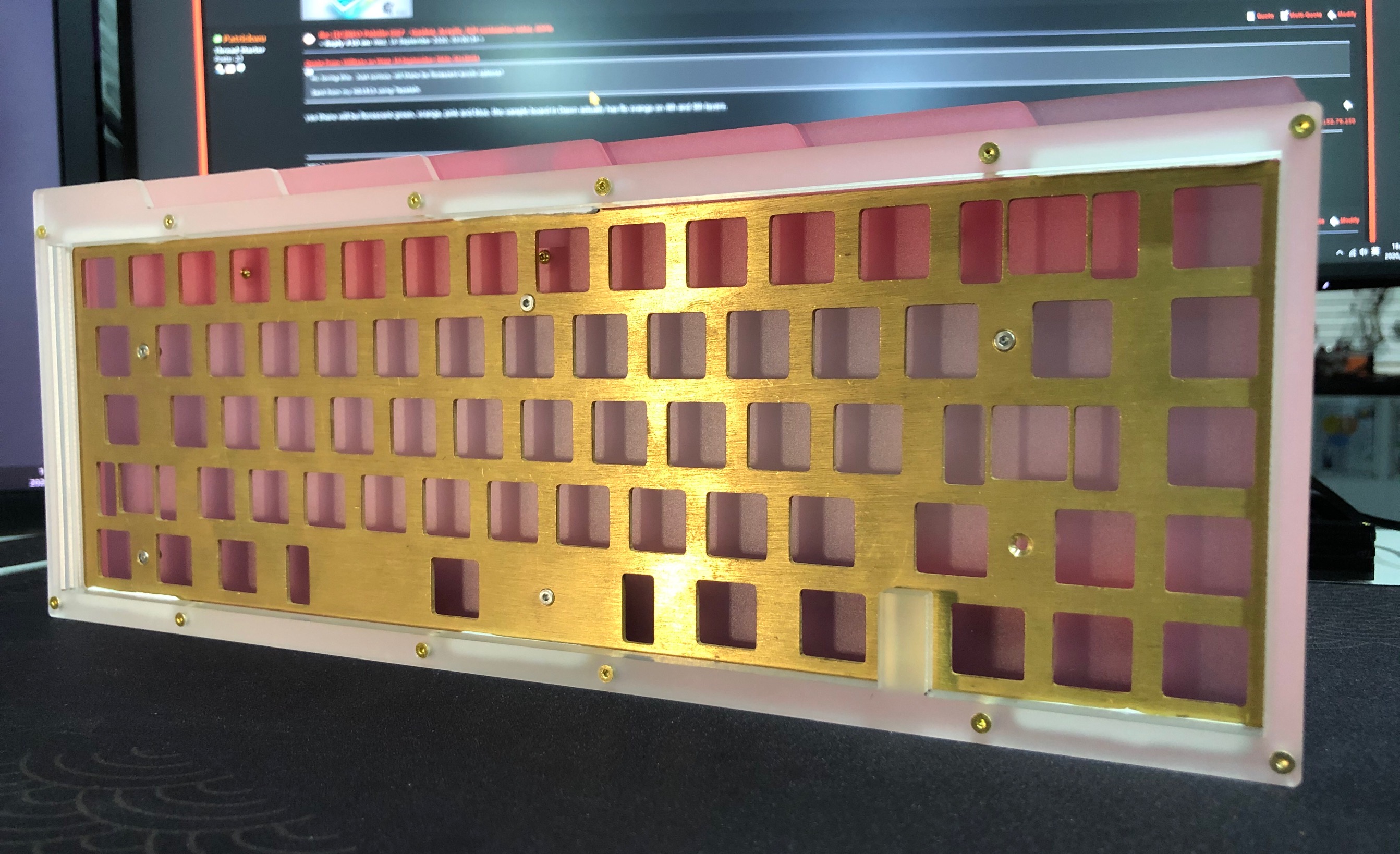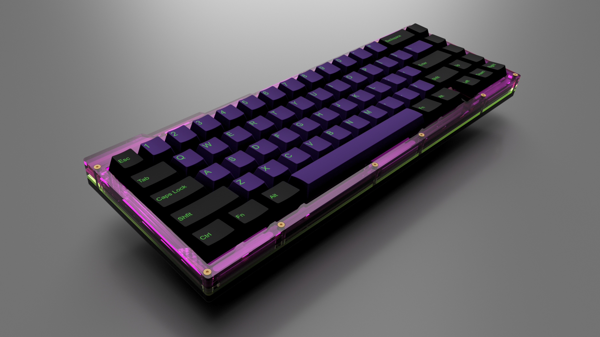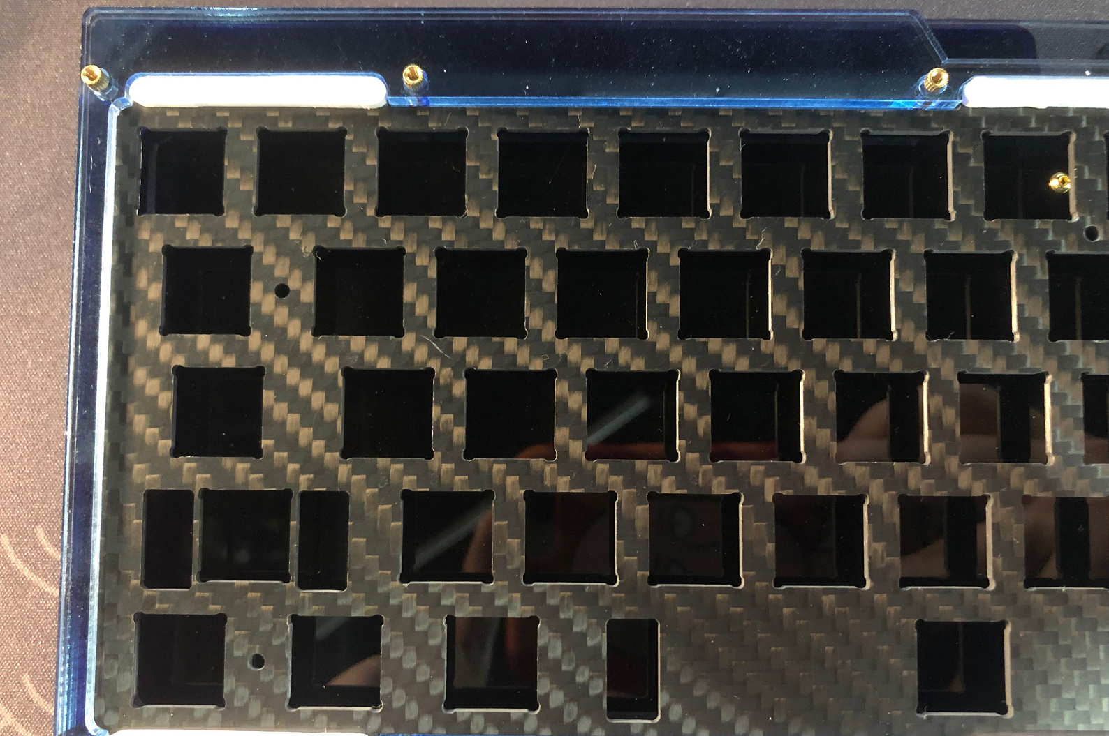 - Acrylic sandwich structure, with fully isolated, gasket mounted switch plate. Switch plate is supported by 6 silicone and 6 EVA gaskets and completely hidden from sides of the case.