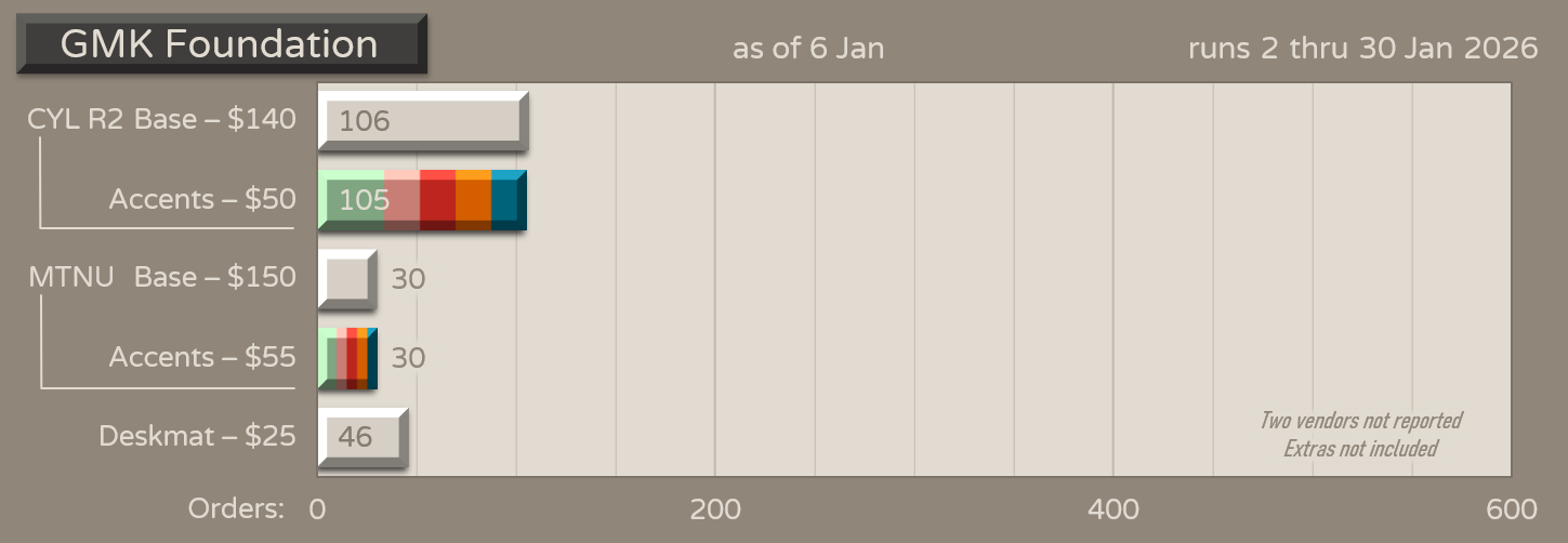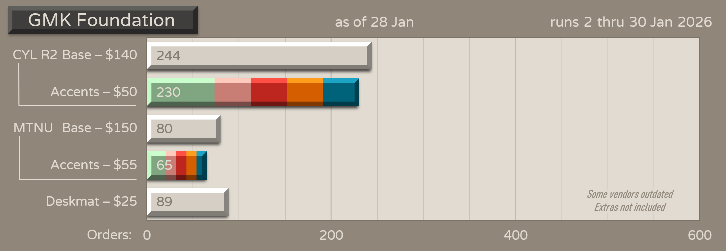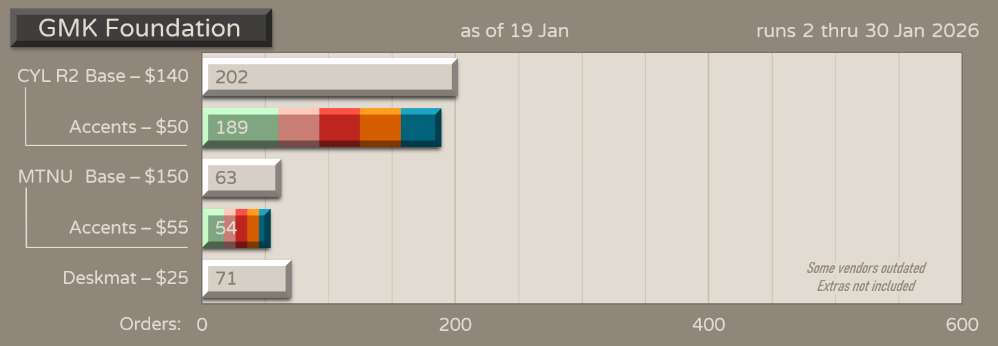 Quote from: ClingyMonkee on Thu, 04 April 2024, 16:16:49Any chance of us seeing an R2 or at least a KKB version? Would love to see this in ABS instead of PBT+ABS.bet. GMK Foundation R2 is returning. Group buy starts January 2, 2026 worldwide!@swishy didn't have the chance to post the geekhack thread and he apologizes sincerely