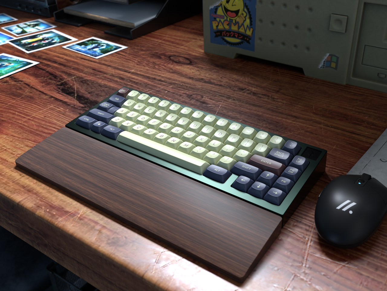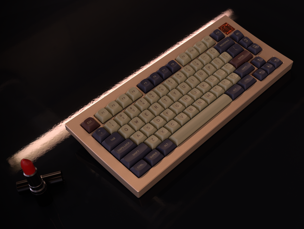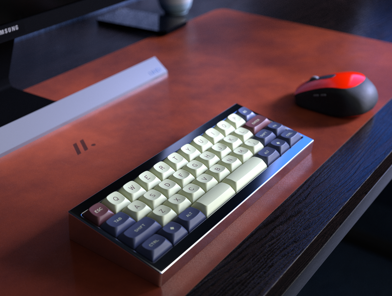 I have received samples from GMK and updated all renders to match the colors. The most significant change was in the red, which went from more of a darker red to a kind of desaturated "brick red," which I think fits the theme much better.