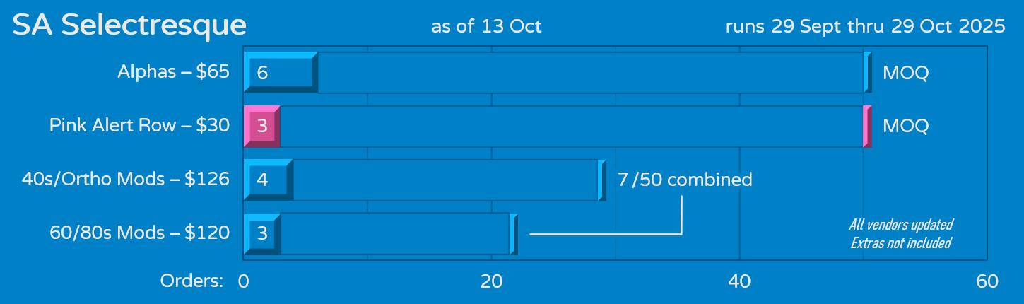 Thanks! We're really trying. I know pricing with inflation has made SA kind of a luxury product at this point. We're pulling out all the kitting tricks we can to offer a combination of alphas and mod bases that will still cover a fair number of boards for under $200, given the very small MOQs that SA sets hit these days. Long gone are the days when Drop would sell hundreds of an SA set, with a couple dozen kits to choose from. I have a feeling we may not see any more SA sets for a while after this, unless something dramatically changes.