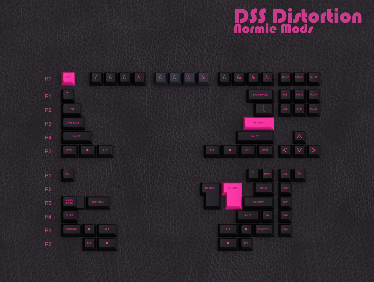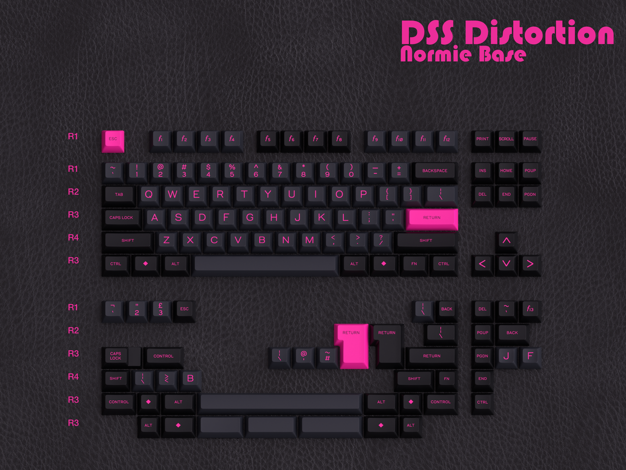 InspirationI have always admired the fashion style associated with punk and post-punk. I also think there is space for a set using a very vibrant pink. This set has undergone numerous incarnations, beginning as an SA set and later spending time in the Cherry profile. Recently, I have become interested in designing a DSS set, having tried it on many 40s keyboards at meetups, and find the height and sculpted spherical profile agreeable. So, this became a DSS set, mainly because the SP stock colors really pop, and I am tired of people telling me SA is too tall.