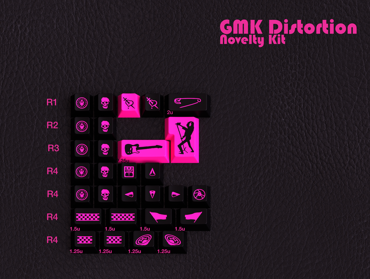Likewise, for the big muff, I listed it as R4 1U because it seems appropriate for a stompbox. On SA/DSS, that's FN for Tsangan 60s, 65s, and TKLs, which everyone uses to switch layers. It also looks better in Pink on black than the inverse, which is a prerequisite for an Escape novelty (looks good in mod and accent colorway).