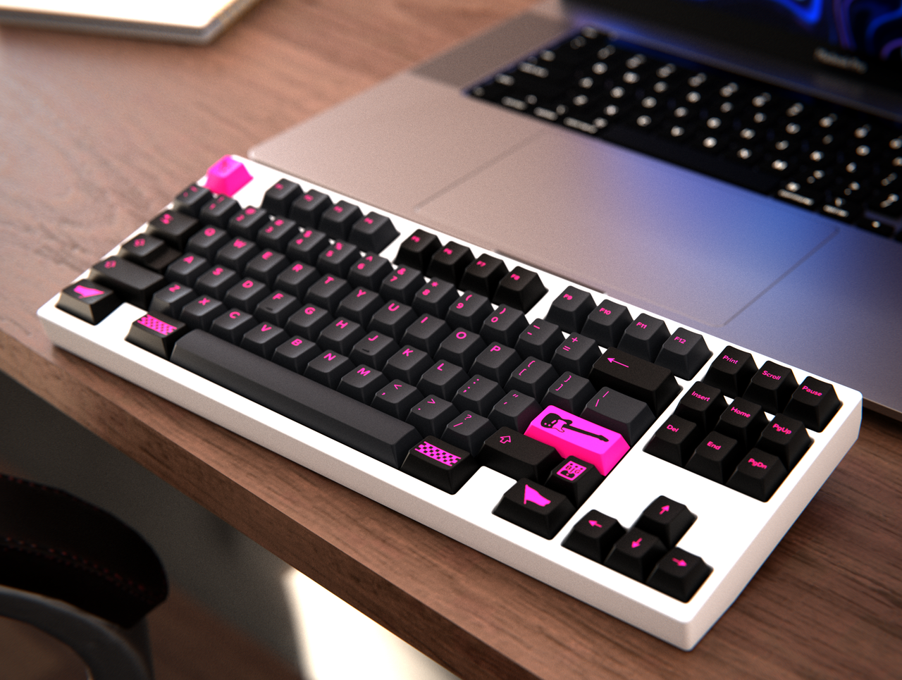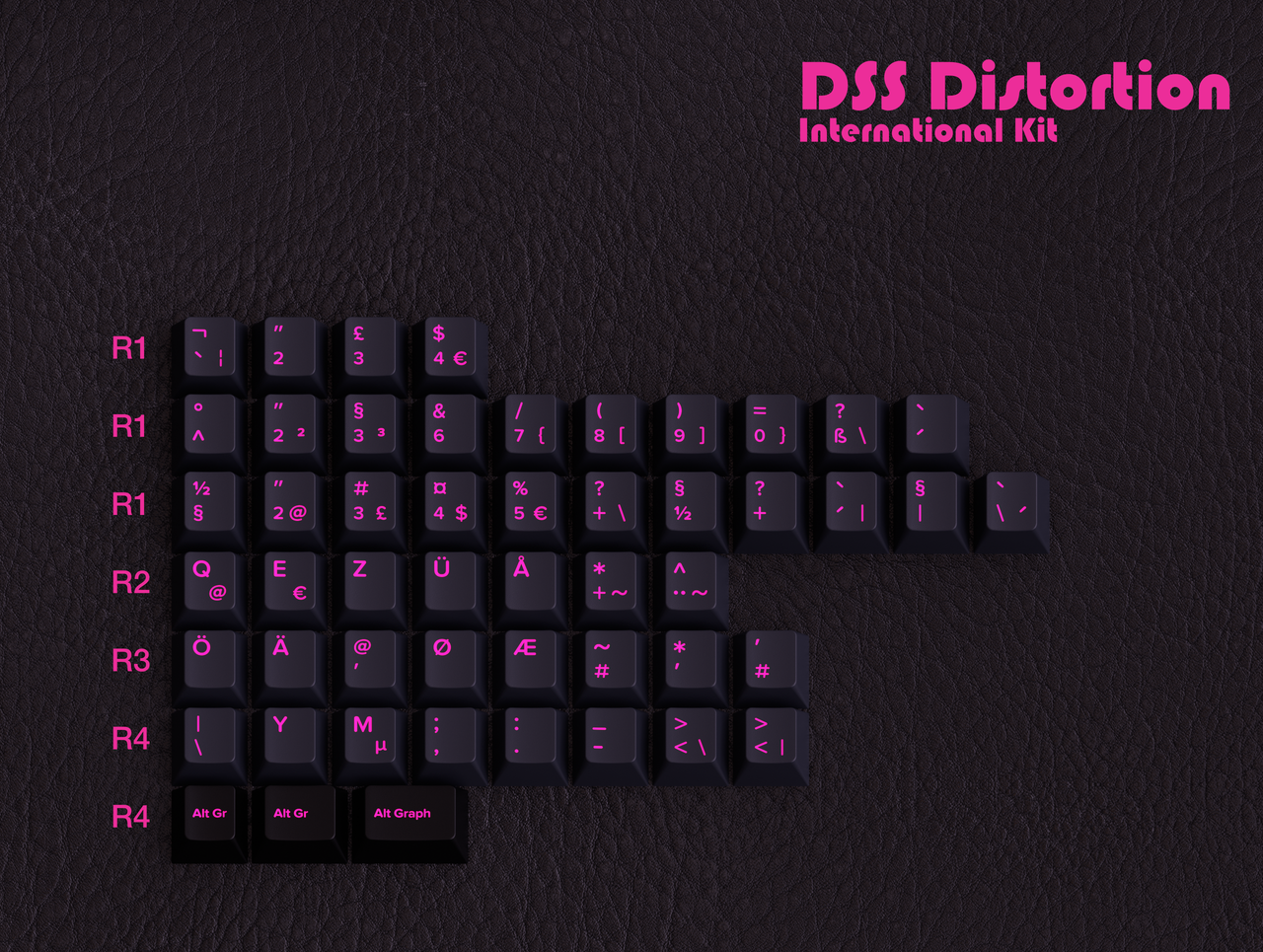 I have always admired the fashion style associated with punk and post-punk. I also think there is space for a set using a very vibrant pink. This set has undergone numerous incarnations, beginning as an SA set and later spending time in the Cherry profile. After a period in DSS, the decision was made to redo this in GMK stock colors, which IMO look very good.