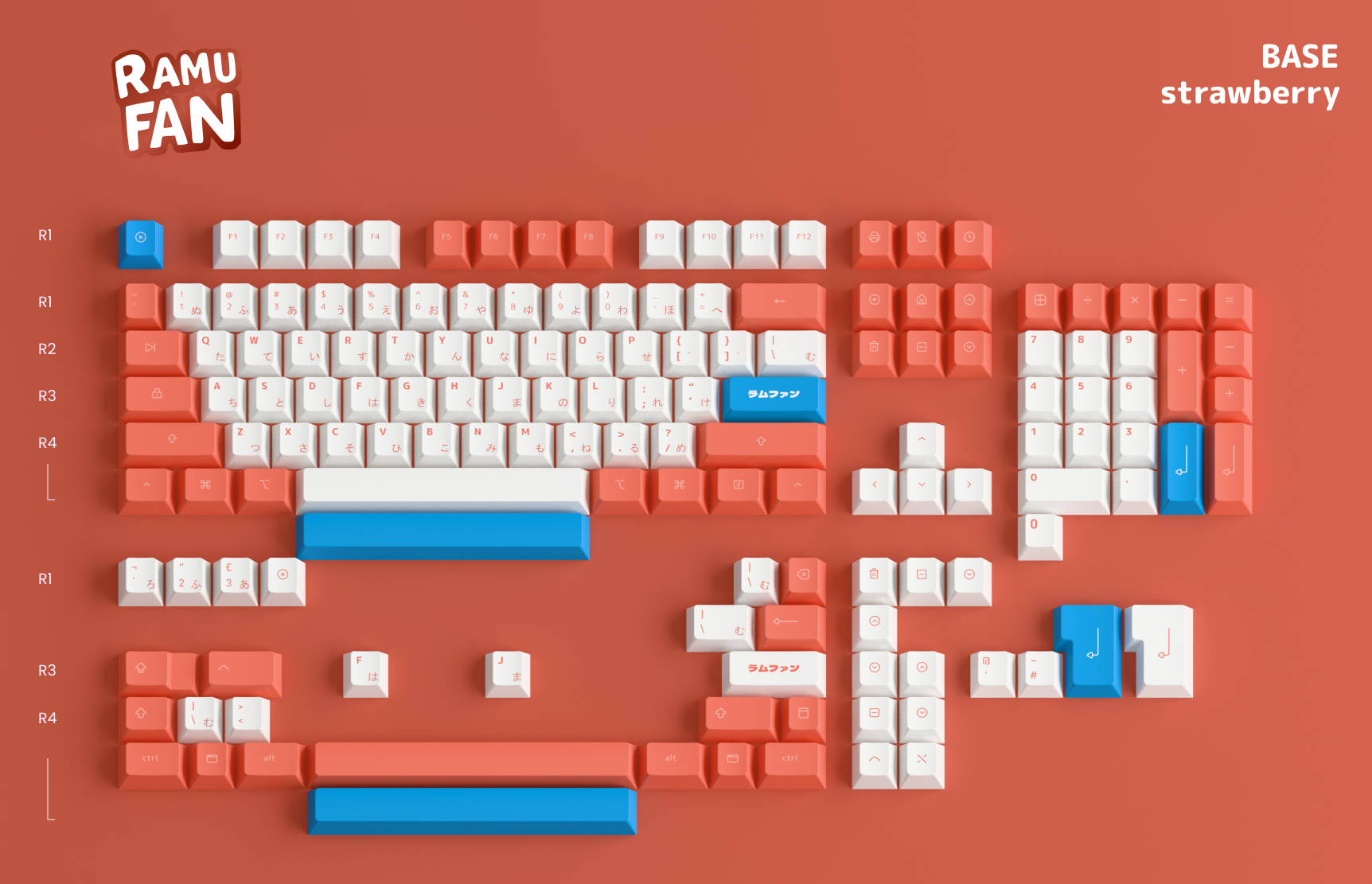 Marketing PageIntroducing Ramu Fans keycap setRamu Fan is a keycap set inspired by one of my favorite Japanese soda drinks, ラムネ (Ramu Bottle). Specifically, the wonderful grape flavour. The set includes the base keys plus some (still work in progress) novelties.