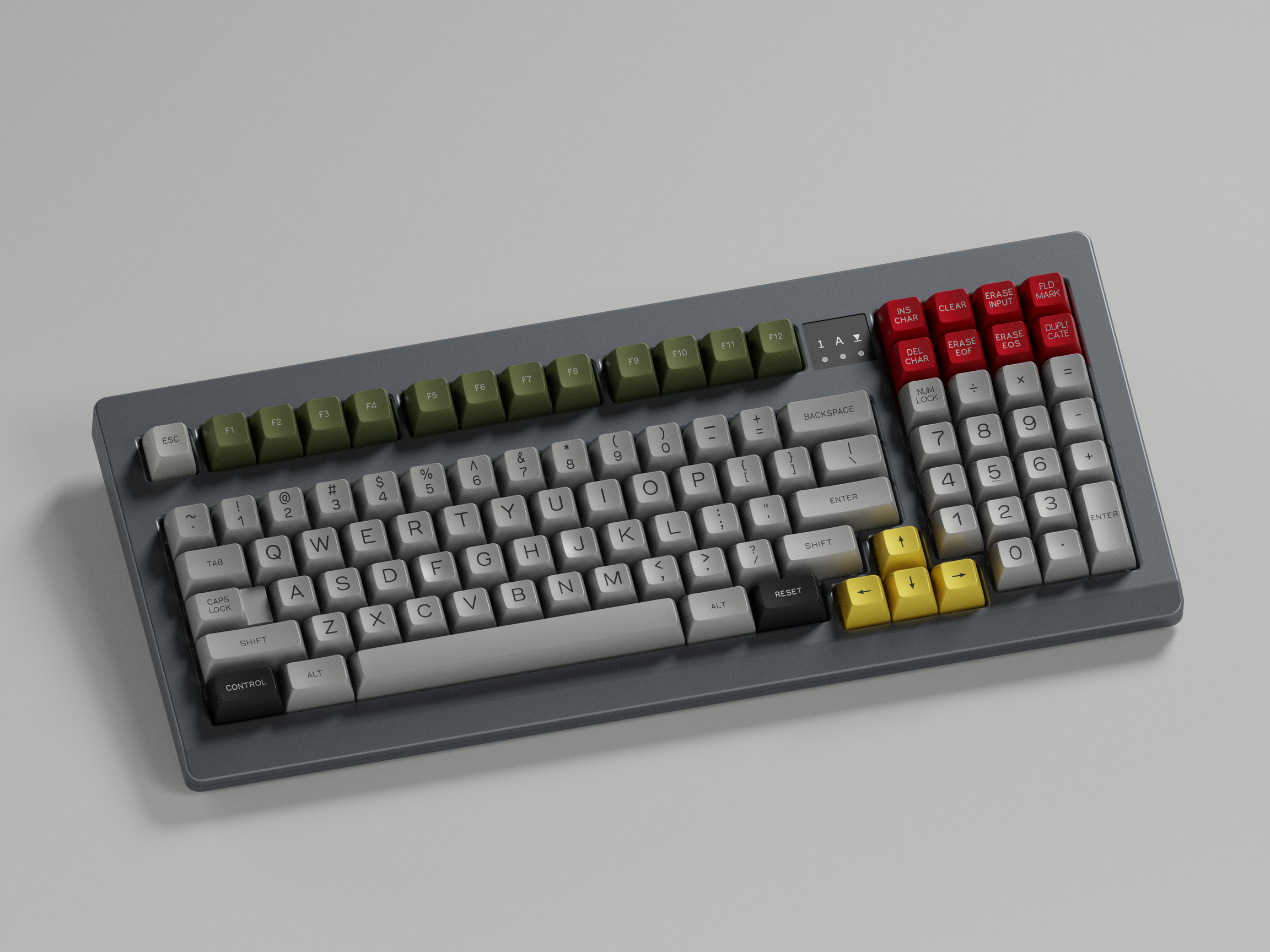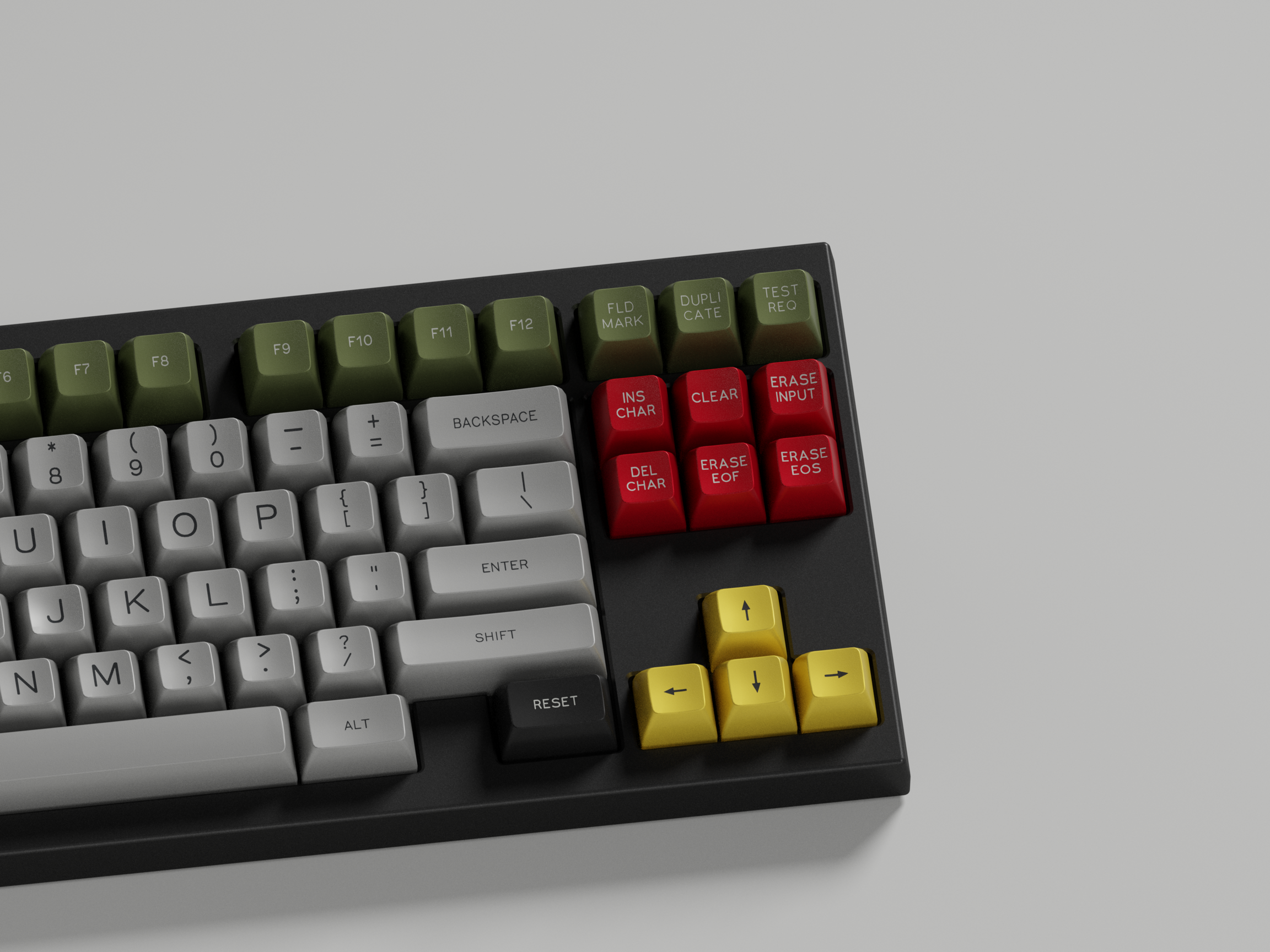 This keyset is inspired by the Texas Instruments 914 keyboard. While browsing Deskthority looking at vintage boards, I stumbled upon this absolute gem.