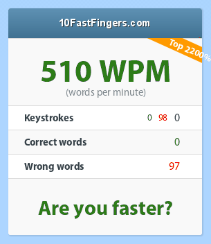 I tried that "Ten Fast Fingers" website and find it odd it doesn't include either punctuation or numbers? Any one have any idea, why this would be the case? Letter's alone is not an indicator of how fast people type the languages.