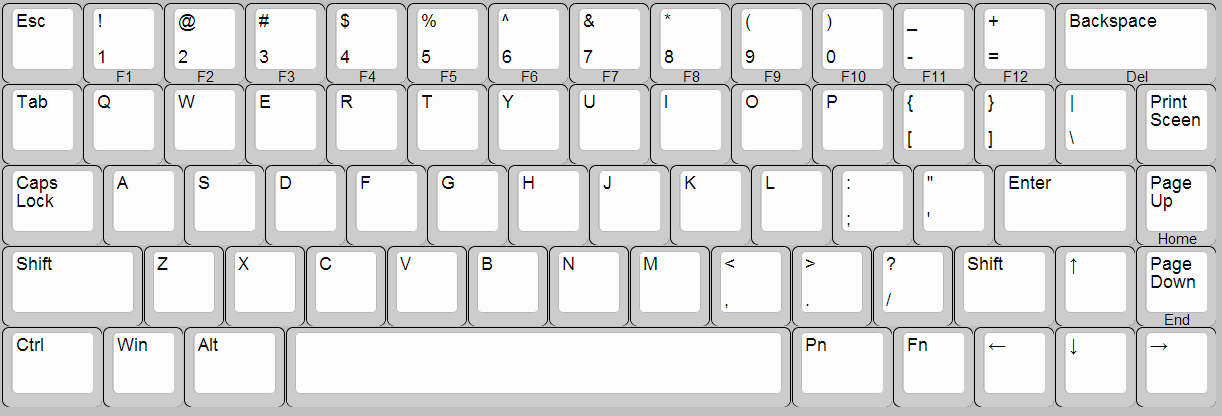 In addition, a navigation cluster is added. Arrow keys and Home/Up/Down/End. There is a Fn and Pn button on the bottom row. This can be changed whether or not you use certain keys more or less.
