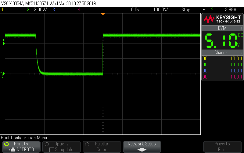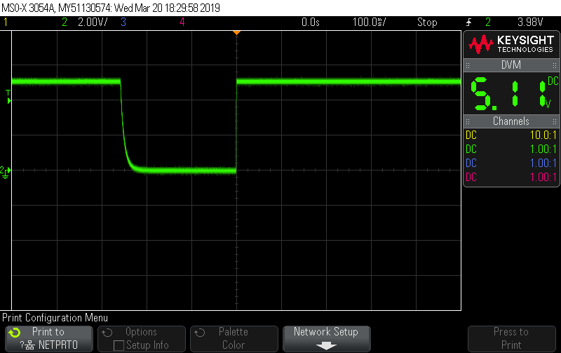 Here what happen with a  50OHm resistor connected between 5V and ground,