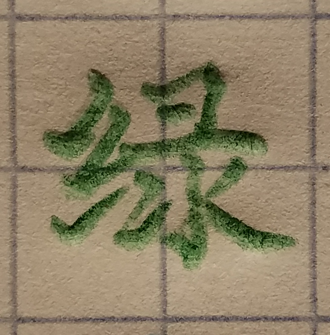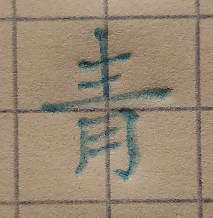 So if you look at my character for (light blue, 青), the second horizontal stroke ended before the indentation into the paper.