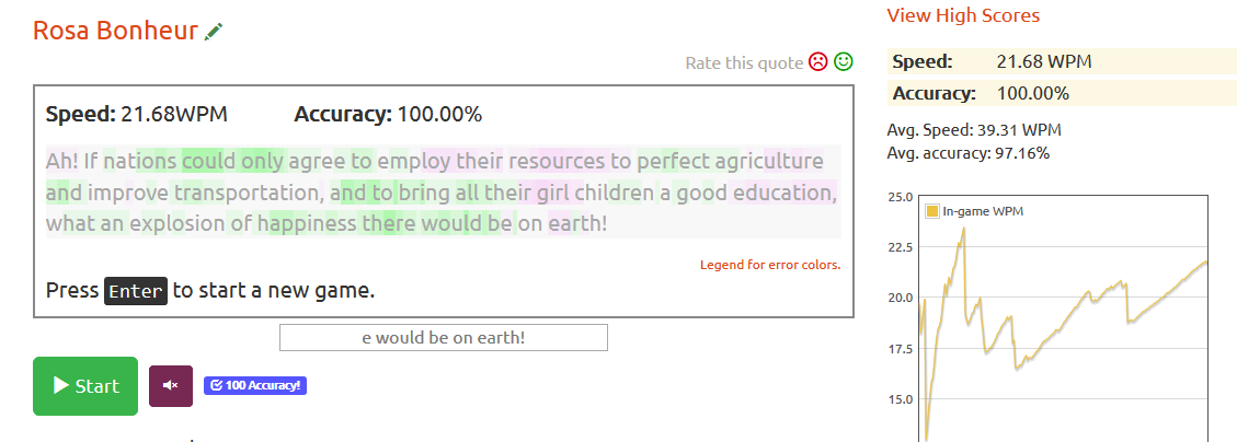 I slowed right down to doing one keyboard stroke slowly after another. Even still it took about 30 tries to even get a 100% accuracy on a random piece of text.