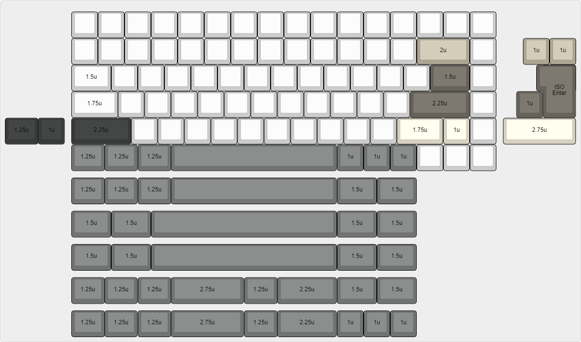 Included in each kit is a Cherry MX Positioning Plate, however an Alps Plate is available as an optional extra. The Alps Plate will support the standard ANSI 75% layout only.