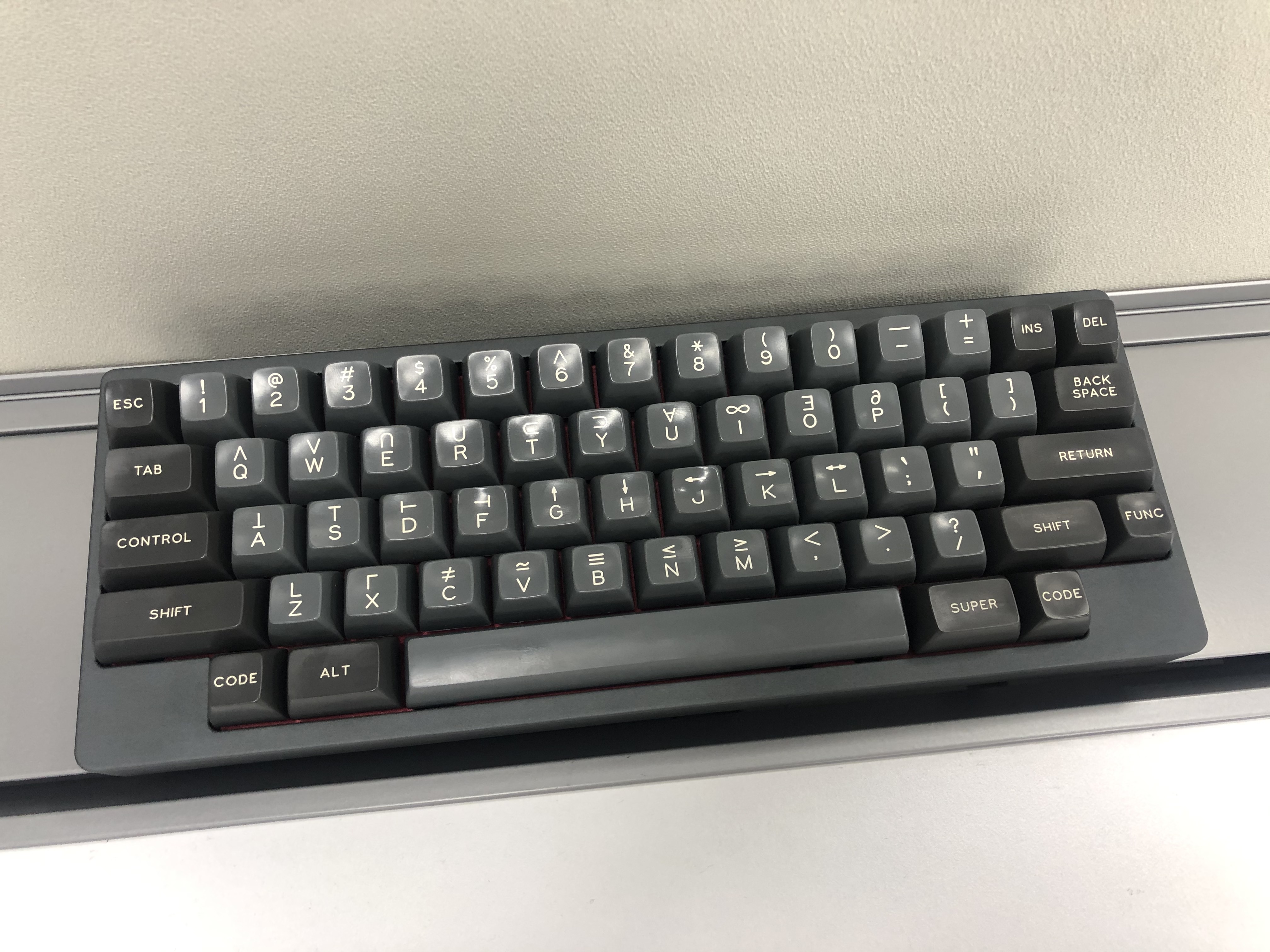 And OP stayed with SP's publicly accessible legends of number row as a design decision, despite being quite different font-wise from the render Gotham Rounded (which matches better with the original Space Cadet keyboard font design).